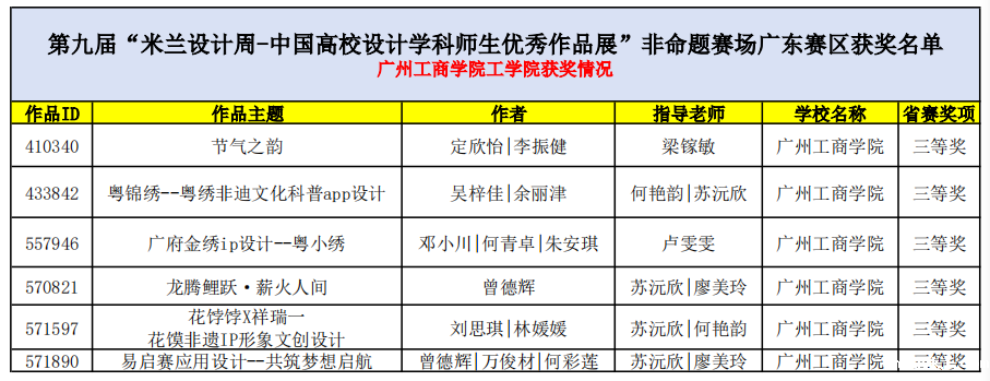 【本网讯】5月29日,第九届“米兰设计周—中国高校设计学科师生优秀作品展”非命题赛场广东赛区获奖名单揭晓,学校工学院学子斩获6项省级奖项!